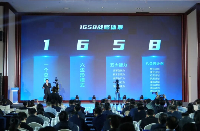 “1”即打造地市级主流媒体智媒生态引领者;“6”指涵盖顶层设计、体制机制、内容生态、技术底座、经营范式与数智转型的六边形模式,该模式已成为全国地市级主流媒体的实践样本;“5”为变革创新力、技术引领力、内容生产力、在地执行力、生态构建力五大核心能力建设;“8”则是八朵云计划,包含智云计划——数字文化大模型,青云计划——智慧城市运营商,红云计划——社区及潮流圈层服务商,风云计划——数智场景创新应用,星云计划——数字生活提供商,彩云计划——数智内容生产与传播,流云计划——媒体语料库与GEO,祥云计划——政企客户智能体,把AI当作行业底层变量,探索数智化城市传播全新应用场景。