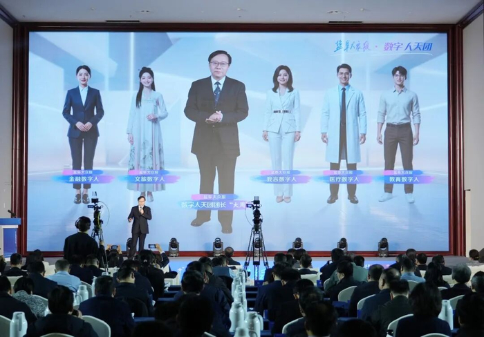 项目发布伊始,盐阜大众报“数字人天团”集体亮相、燃动全场。“数字人天团”由我言数字人“青禾”、医疗达人“言筱医”、金融能手“言筱金”、教育博主“言筱思”、文旅向导“言筱游”组成,高颜值阵容携手演唱《AI星海·共扬帆》,灵动展现数智时代的活力与风采。