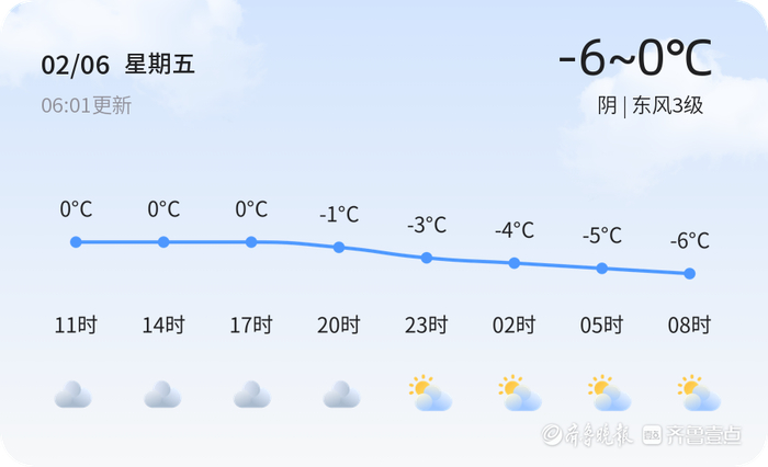 今天是2月6日,星期五,农历十二月十九。枣庄市今日天气阴沉,气温较低,全市各区最高气温0℃,最低气温-6℃,目前实时温度-1.9℃,东风3级,空气湿度37%,PM2.5指数55,空气质量良好。各区天气情况基本一致,均为阴天,气温在-6℃到0℃之间。市民出行需注意防寒保暖,驾车时请减速慢行,确保行车安全。