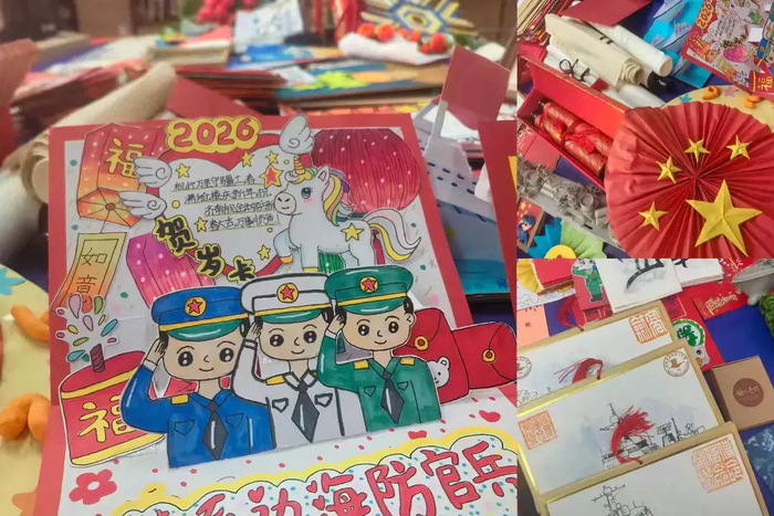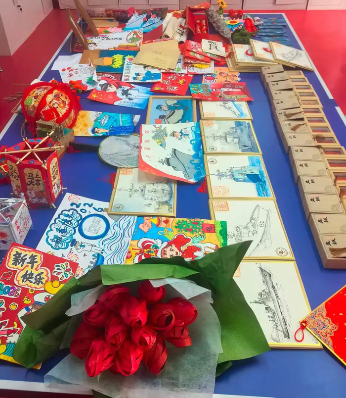 活动后,历城区将精心筹备的慰问礼包寄往济南舰,其中包含历城二中、洪家楼第三小学师生创作的贺卡、书法作品及特色文创产品。一张张贺卡写下真挚祝福,一幅幅书法彰显拥军情怀,一件件文创融合历城元素与海军文化,既传递着历城人民对子弟兵的牵挂,也成为军民同心的美好见证。