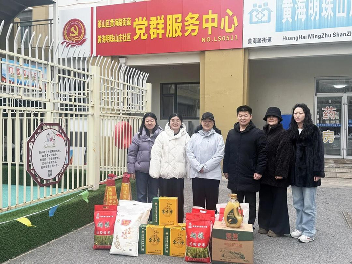 随后,慰问组一行前往莱山区华润和黄海明珠山庄两个“双报到”社区走访慰问。其间,慰问组逐一走进辖区老党员和困难群众家中亲切交谈,详细了解他们的身体状况、生活需求等,叮嘱他们添衣保暖、注意身体、保持乐观心态,安心过年。同时,还为他们送上慰问品与新春祝福。
