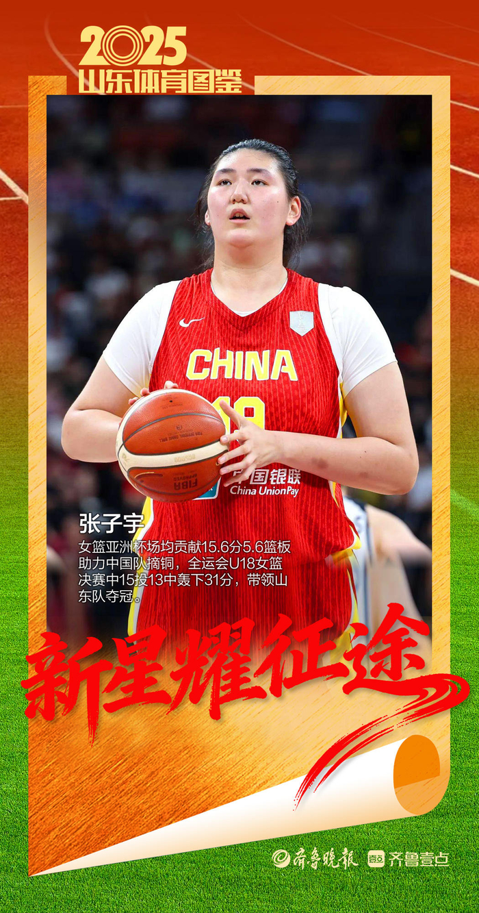 18岁的“小巨人”张子宇则在成年组赛场崭露头角,女篮亚洲杯场均贡献15.6分5.6篮板助力中国队摘铜,全运会U18女篮决赛中15投13中轰下31分,带领山东队夺冠。