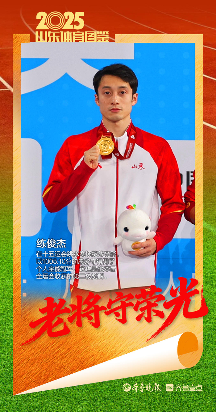 25岁的练俊杰在十五运会跳水赛场绽放光彩,以1005.10分的总分夺得男子个人全能冠军,这也是他本届全运会收获的第二枚奖牌。