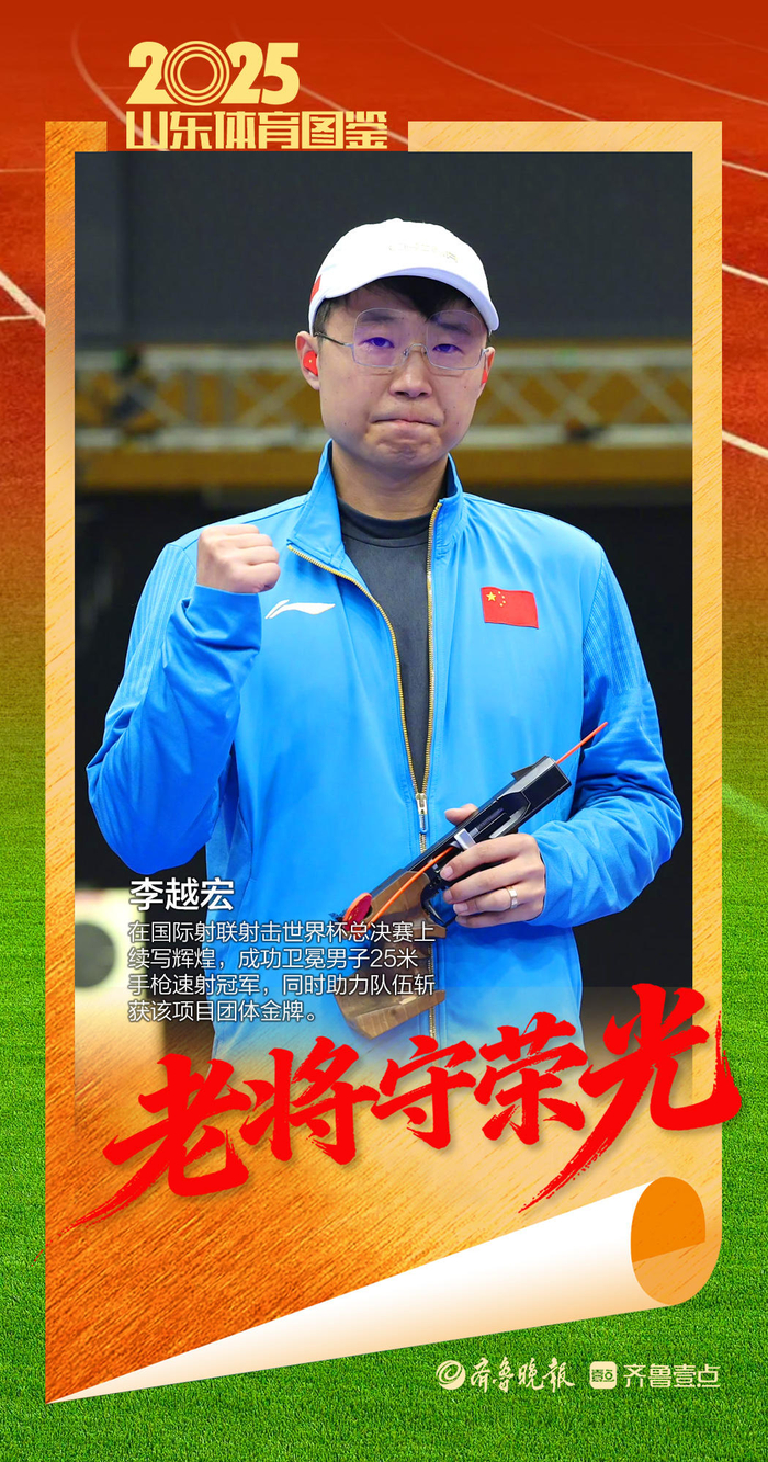 36岁的李越宏则在国际射联射击世界杯总决赛上续写辉煌,成功卫冕男子25米手枪速射冠军,同时助力队伍斩获该项目团体金牌。