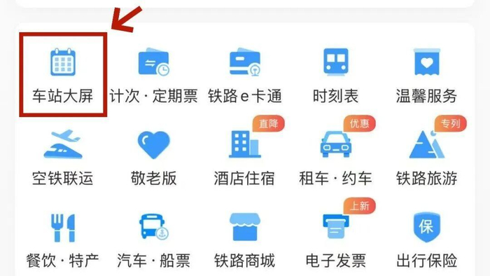 打开铁路12306手机 App,点击“车站大屏”,查看自己所购车票的车次。在“候车室/检票口”列可以找到所乘列车的检票口位置,还可以提前看到列车正晚点信息。