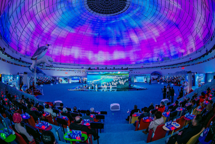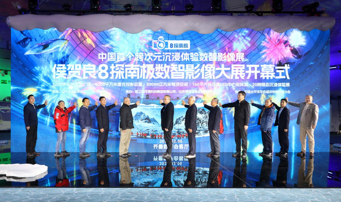 展览以山东博物馆1-4楼跨层联动立体动线,设六大展区、三大主题板块,构建“从城市喧嚣到南极纯净”的观展旅程。第六展区作为本次大展的核心数智展区,依托山东博物馆南北极探索中心3200平方米极地广场、80000立方米穹顶空间全域环绕及160平方米超大LED中心裸眼屏矩阵的多维叙事,深度创新融合舞台剧演绎、数字空间叙事、无人机仿生动物表演、4.0穹顶巨幕秀、观众参与互动决策剧情等20种模态,全景沉浸呈现南极自然生态、科研环境及生物多样性,开创全民可感、全民共享的“新五感”影展新生态,构建可站可卧可躺可蹲的360°多维立体沉浸场域,极大丰富了观众体验。展览将持续至5月30日 。此次展览由山东省摄影家协会、山东博物馆主办,新之航传媒科技集团、山东博物馆南北极探索中心承办,中国太平洋学会海洋创意传媒分会协办。山东省文联、山东省摄协、山东博物馆有关负责同志,以及省内外媒体、摄影爱好者等300余人参加活动。