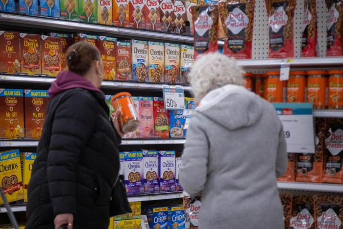 2025年3月28日,顾客在美国纽约市一家超市选购杂货。新华社发(郭克摄)