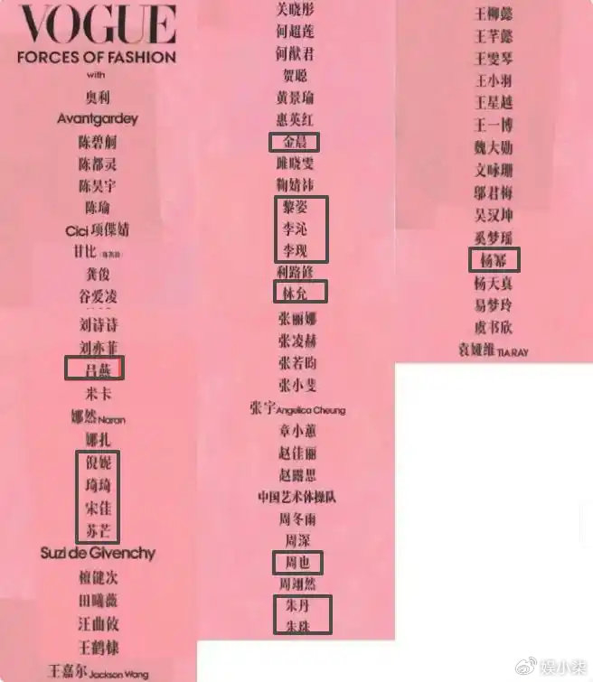 有人就扒出这个爆料的活动应该是去年在深圳的VOGUE盛典,将名单拉出后,能看到当晚的二字女星还是不少的。