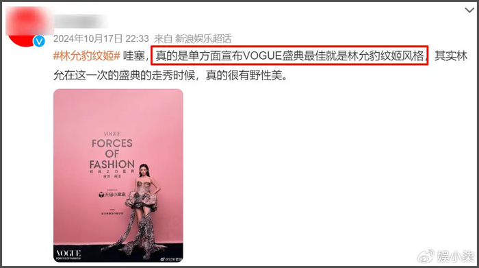 随后爆料者又爆出关键信息,说当时霸占更衣室的女星凭借造型还出了套片子,当时还在社交平台上获得了好评。然后就有人将矛头直指林允,甚至拿出了诸多细节表示跟林允都能对上。