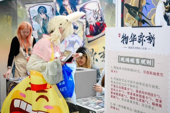 这里还有供同好粉丝集结的摊位,上面是心意满满的明信片、卡片、立牌、挂件、吧唧、玩偶、海报……这是创作者注入爱与诚意的想象力与制造力体现,也是同好之间惺惺相惜的最好见证。