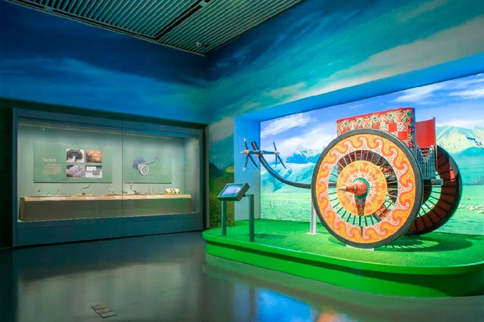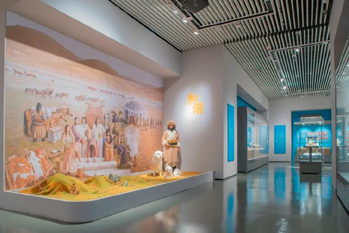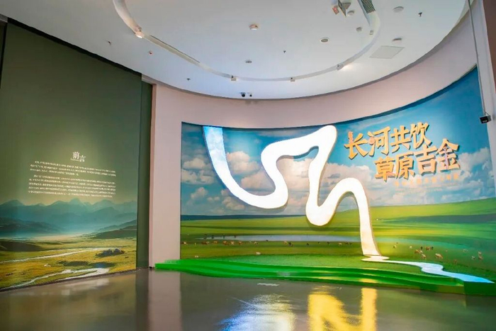 在展陈设计上,创造性运用“解构-重组”手法,将草原纹样转化为波浪形展墙与投影,模拟草原丘陵与黄河水势,实现“异域文化”的本土转译。色彩设计上以“草原绿—黄河黄—海洋蓝”为序,象征文明从草原沿黄河走向大海的流动历程。
