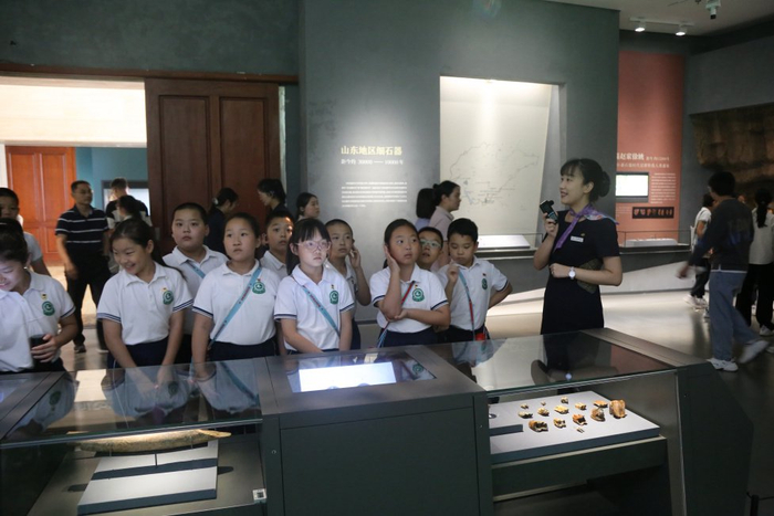 在社会教育方面,依托馆藏特色与临时展览开展“寻城记——‘沿着黄河遇见海’博物馆主题研学活动”“格物问鼎——礼出东方主题研学活动”“迁徙之道——自然探索实践教育活动”等主题研学课程,形成人群覆盖小学至高中不同学段的完整课程体系。与多所学校深入合作,将博物馆资源纳入校本课程或课后服务,开展“送课入校”385次。联合沿黄九省区及山东省内沿黄城市共建博物馆,结合学校教育课程共同开发“沿着黄河遇见海”“陶韵菏泽”“鬶观汉韵”“釜观黄河”等18项课程,实现学校教育与社会教育的有机链接。助力特殊教育发展,发起“窗棂行动”对接山东特殊教育职业学院残疾人文物修复学科建设需求,构建“馆校企”协同育人新格局。