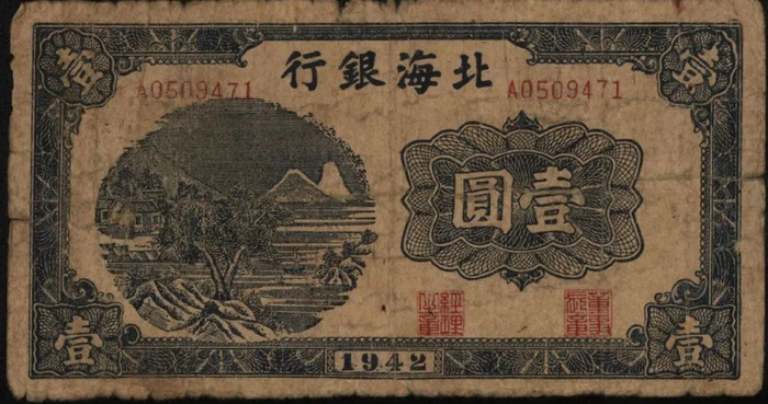 1942年北海银行壹元纸币 “山河永固——晋冀鲁豫抗日根据地革命文物展”展出