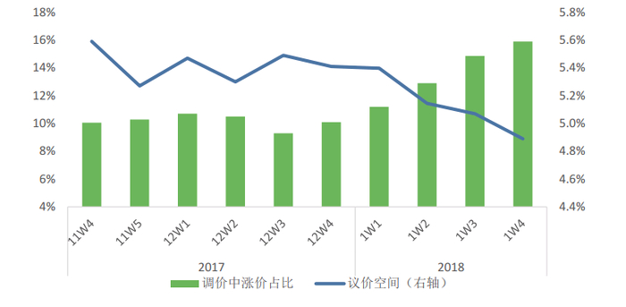二是议价空间略有收窄,从11月的5.6%降到4.9%;挂牌价涨跌比例也在发生微妙的变化,调涨房源比例首次出现小幅提升,从10%以下增长到15%,尽管85%的房源还是在调降,但比例的边际变化也还是值得注意的。