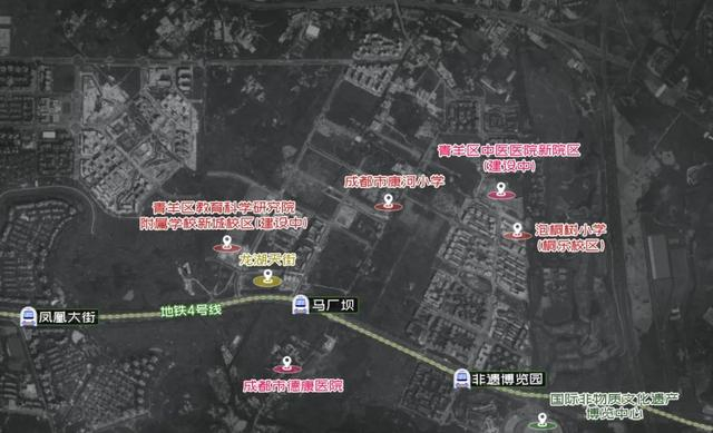 目前,非遗-马厂坝TOD区域的交通配套是相对比较成熟的,区域内拥有地铁4号线、13号线(在建),串联青羊、武侯、锦江、龙泉驿区。地面交通则拥有光华大道、绕城高速作为通行主干道,出行较为便利。
