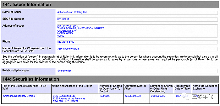 去年11月,美国证券交易委员会(SEC)披露的两份144表格显示,马云家族信托全资拥有的JC Properties Limited和JSP Investment Limited拟于11月21日出售阿里巴巴创始人股份,均为500万股美国存托股份(ADS),共涉及股票市值8.707亿美元。