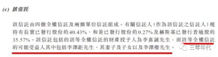 2020年,长和和长实同时披露,李嘉诚又将其个人名下所持合计133亿股份,转到了家族信托里,转让后,李氏家族几乎所有资产全部转入家族信托。