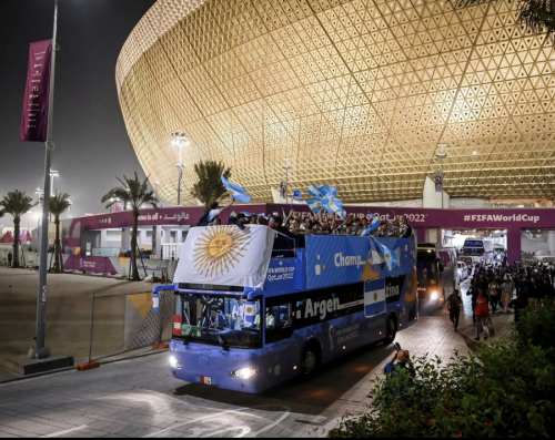 卡塔尔世界杯阿根廷夺冠后乘坐海格巴士巡游