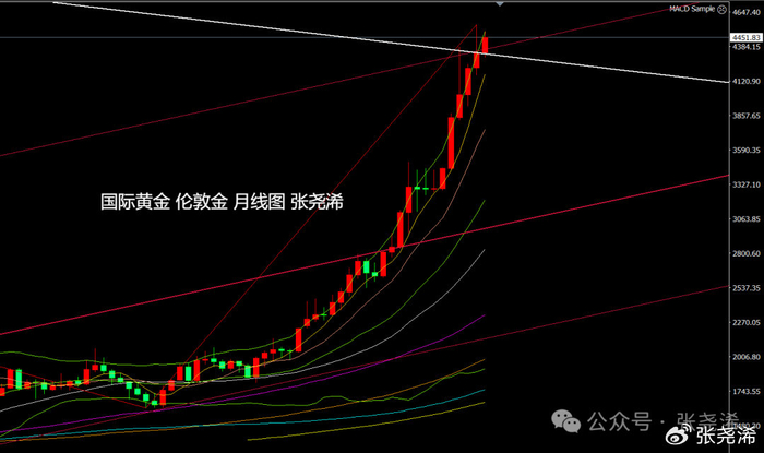 反之,如本月再度收取倒垂至趋势线之内,则需留意后市有再度展开较大回调,去回踩4000-3900美元区域或更低位置的风险;