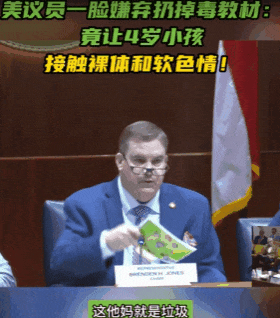 在最近的一场听证会上,北卡罗来纳州众议员布兰登·琼斯当众怒斥学区主管不作为,放任许多“毒教材”在学区出现,说到气头上,一度把书全扔到了地上。