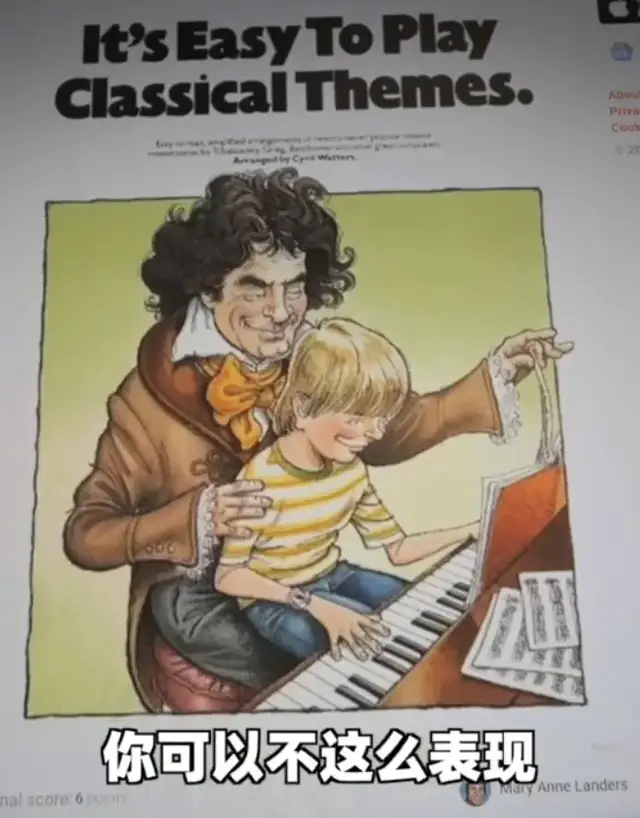 身残志坚的钢琴大师被画成了猥琐揩油恋童癖,“It's easy to paly”配上耐人寻味的表情,不像在弹琴而是调情。