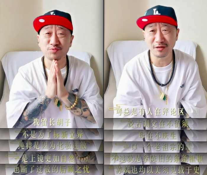 在脸部形象上,他经常会剃个光头,留着长胡须,打扮的很有范,因此多次被网友提醒父在不留须,可他好像并不在意。