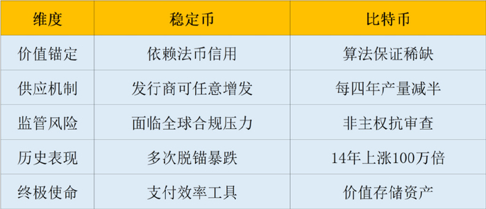 最残酷的可能是:美联储数字美元(CBDC)上线之日,将成为私营稳定币的集体葬礼。那时USDT/USDC们,要么接受美国的国有化改造,要么在信用等级维度被彻底碾碎——而比特币因完全脱离法币体系,反而成为幸存者。