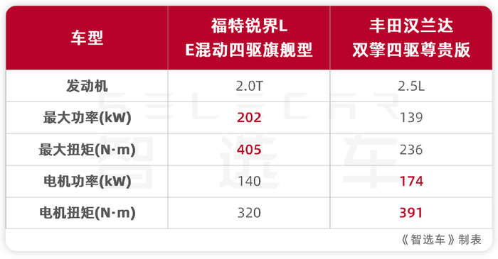 电池技术与安全性方面,锐界L采用体积更小、成本更高的三元锂电池,搭配水冷散热系统,散热效率更高,且电池布局在地板下方与乘员舱隔离,安全性更优,地台高度也会更低,老人小孩上下车更方便;汉兰达则使用镍氢电池+风冷散热,电池布局在座椅下方,地台更高,技术先进性与安全性和锐界L存在差距。