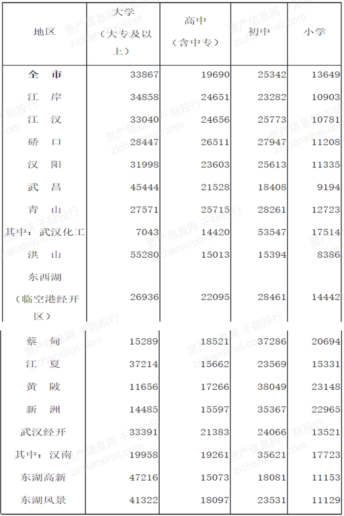 图 武汉市各区每10万人口中拥有的各类受教育程度人数
