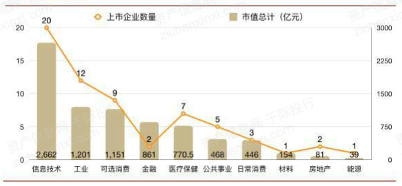由下图可知,武汉市上市企业数量明显集中在信息技术产业,体现了城市新一代信息技术产业发力强,产业结构优势明显。