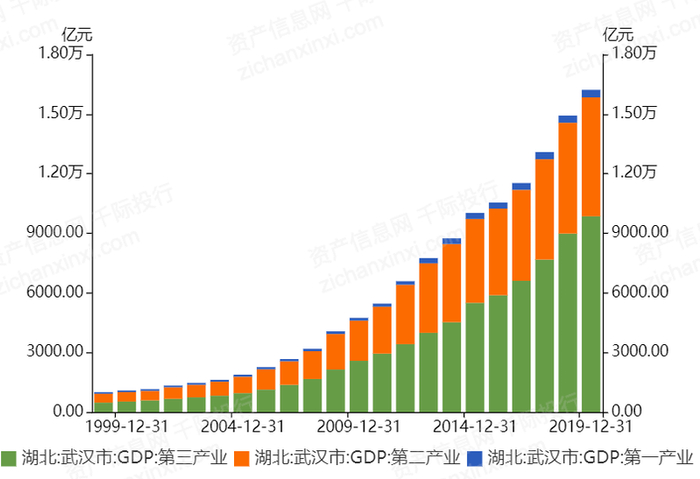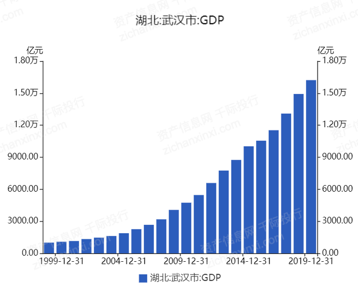 2020年武汉市地区生产总值为15616.06亿元,相比2019年增长了15614.44亿元;人均GDP为126687元/人,相比2019年减少了18858元/人。