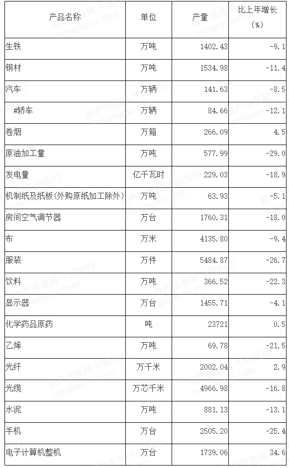 按产业分,第一产业投资下降15.2%;第二产业投资下降20.2%,其中工业投资下降20.4%;第三产业投资下降8.8%,其中基础设施投资下降16.7%。民间投资下降18.8%,占固定资产投资的比重为47.0%。