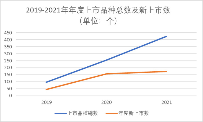 从图中可看出,2019-2021年三年时间年度上市数及上市品种总数持续不断增长,说明文化艺术品市场需求不断在增加。