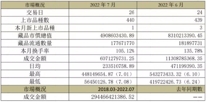 (图为2022.7中国国际文化艺术品交易所市场概况)