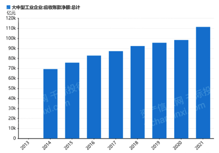 图 2014-2021年中国大中型工业企业应收帐款金额