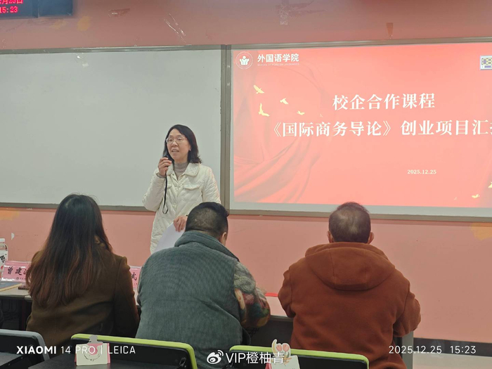 2025年12月25日,重庆工商大学涵智楼1108教室座无虚席,一场以“理论赋能实践,校企共育新商才”为主题的《国际商务导论》课程结课汇报活动在此盛大召开。重庆力渝精工科技有限公司总经理唐代平作为校企合作企业代表受邀出席,与师生共同见证课程成果,共话产教融合新路径。