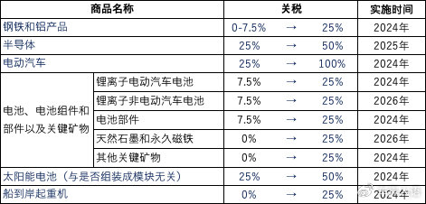 美国拜登政府5月14日宣布,提高对华的钢铁和铝产品、半导体、电动汽车(EV)、电池、电池组件和部件以及关键矿物、太阳能电池、船到岸起重机、医疗产品等商品的关税。其中,电动汽车关税由25%提升到100%。