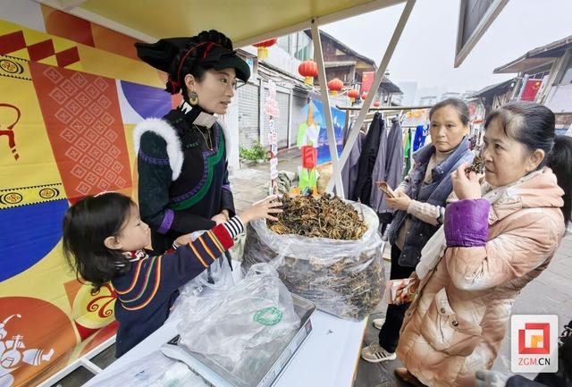 芦笙悠扬,银饰叮当,五彩斑斓的少数民族盛装点亮了贡井老街。12月31日,贡井区第二届民族特色产品公益集市开市。从彝家手工编织到藏族传统唐卡,从高山生态蜂蜜到非遗手工艺品,各族同胞携200余种充满民族风情的特色产品赶来,共赴这场民族团结的盛会。据了解,这场“赶集”将持续4天。