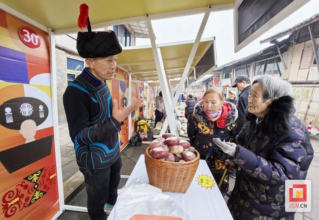 大凉山乌洋芋、甘孜新龙酥油、阿坝冬虫夏草、金阳青花椒、雷波脐橙、非遗大漆、五宝手工面……70个特色摊位在贡井区老街一字排开,琳琅满目的产品令人目不暇接。来自甘孜藏族自治州新龙县的小伙土登尼玛,热情地向过往群众介绍家乡的新龙藏香,他拆开包装,让那独特的香气飘散开来,吸引了不少人驻足询问、购买,他说:“看到我们的藏香被大家喜欢,心里高兴得很。”