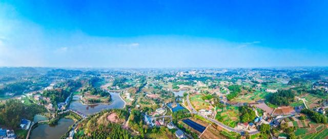 自贡市沿滩区的永安镇宛如一幅精心绘制的生态画卷。纵横交错的田畴与蜿蜒的道路,将大地分割成斑斓的色块,方格是填,翡翠是塘,勾勒出宁静而有序的田园肌理。民居院落星罗棋布,依偎在绿水青山之间,蜿蜒的道路与散落的民居,共同编织出一幅安居乐业的静谧画卷。远山如黛,绿水环绕,诠释着“永安”二字所蕴含的田园诗意与祥和底蕴。