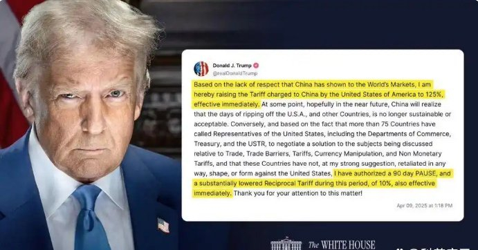 回头懂王就被中国回敬了一个50%关税的大逼斗,所有人都关心,接下来懂王会如何出牌给自己找回颜面,当着无数记者,懂王宣布了两件大事:第一,鉴于中国不尊重他,打了一拳还敢还手,他决定把对中国的关税提高到125%。