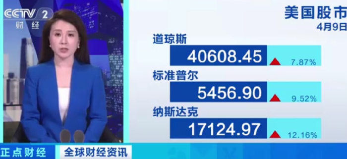 几分钟后懂王摊牌,美股集体暴涨,标普涨了9%,纳指涨了12%,特朗普的DJT更是飙了21%......