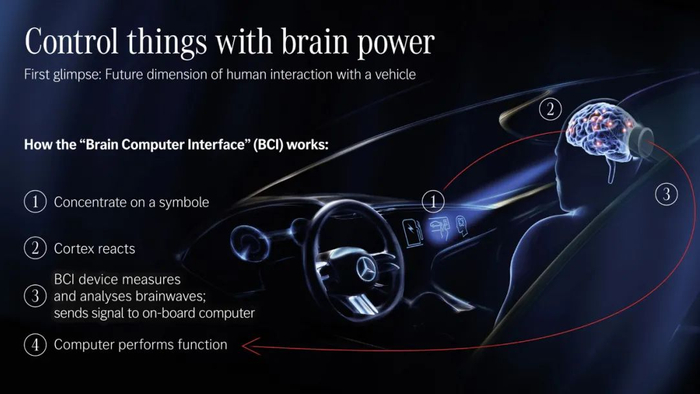 梅赛德斯-奔驰管理委员会成员布里塔·西格 (Britta Seeger) 认为:这款车的亮相在人机融合和汽车脑机接口应用的研发方面树立了又一个里程碑。脑机接口技术有潜力在未来进一步提高驾驶舒适性。脑机接口技术完全独立于语音和触控,为用户与车辆的直观交互开辟了革命性的可能。