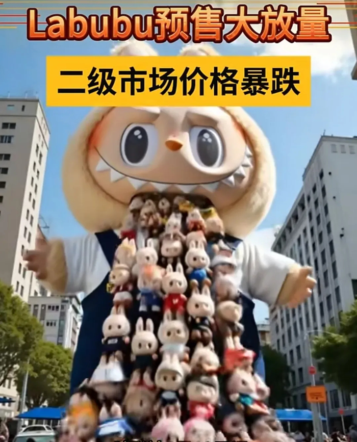 最惨还是那些大量囤货的黄牛,因为labubu严重滞销,行情随之血崩,就算暂停收货也挡不住颓势,不少黄牛单日亏损超10万,手里还压了上百万的货,哭都来不及。
