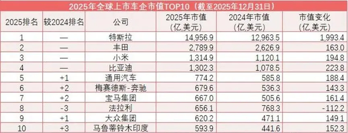 2025年尽管小米从高点回落近40%,市值依然以1315亿美元力压比亚迪的1302亿,稳坐国内车企老大的位子。