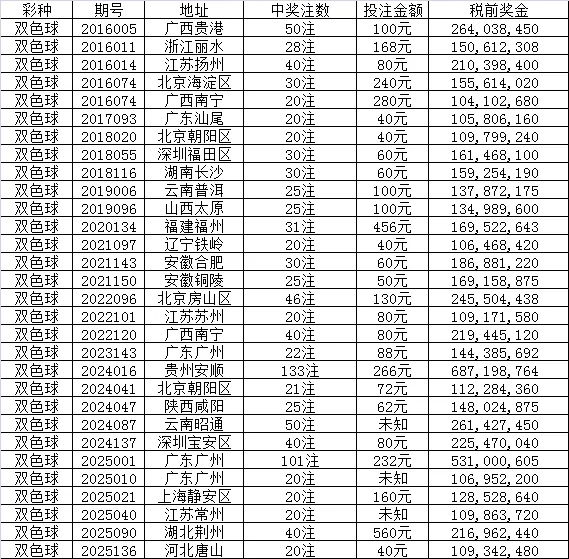 翻看过去10年,双色球和大乐透的一等奖中奖记录,会看到不少有意思的事情。