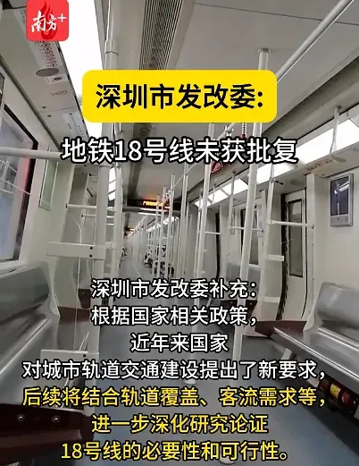 还有一件事值得一提,近日深圳地铁18号线未获批复的消息,更让那些仍对地铁梦存有一丝幻想的城市死了心。