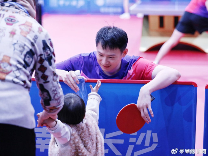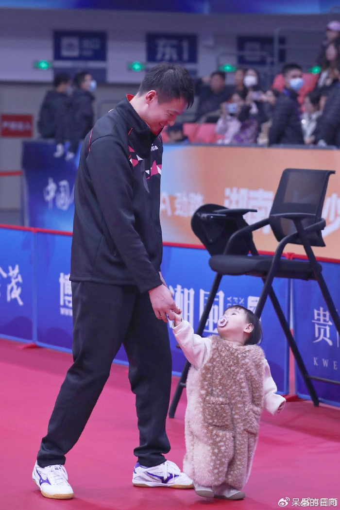 从照片可以看到,周雨与女儿之间的互动十分可爱,隔着护栏看着女儿脸上露出了幸福的笑容,有爱的画面让网友们纷纷留言点赞:“这闺女长得跟雨哥简直是一模一样,眼睛大大的好可爱”、“时间过得真快,一转眼雨哥都当爸爸了,一转眼雨哥的女儿都能走路了”、“国乒能不能实现我的愿望,让乒二代们一起拍张合影啊,呜呜,太想看了”、“周雨看着女儿的眼神太有爱了,妥妥女儿奴了”、“小十一再长大一点,真的会成团宠的,萌哭了”、“难怪雨哥状态这么好,女儿场边督战呢。