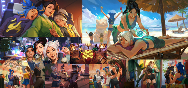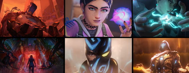 更不用说在此之前,Riot公司的王牌产品《英雄联盟》就已经凭借类似的设计火爆全球,证明了这种美术风格在市场上的可行性。这种风格也极大地便利了后续的世界观拓展和艺术创作。比如游戏的CG微电影,采用了和《双城之战》类似的三渲二动画风格,兼具手绘质感与立体动感。而历年的世界赛主题曲,大多采用2D动画短片的形式,这种形式不仅方便叙事和场景切换,也更有张力。2023年的世界赛主题曲《流光似箭》,在我看来是近些年最棒的游戏音乐MV作品之一。