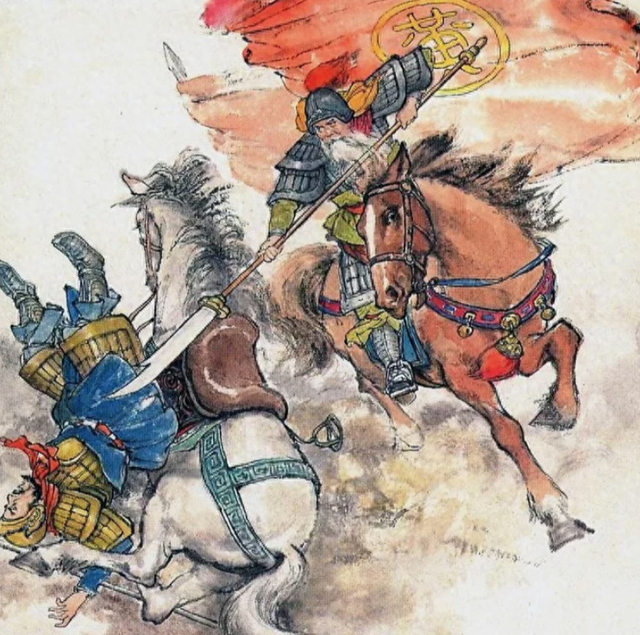 据说是和他的士兵们一起修复鹿角这样一个让人匪夷所思的行动下,被从定军山上冲杀下来的黄忠当场拦腰砍死。